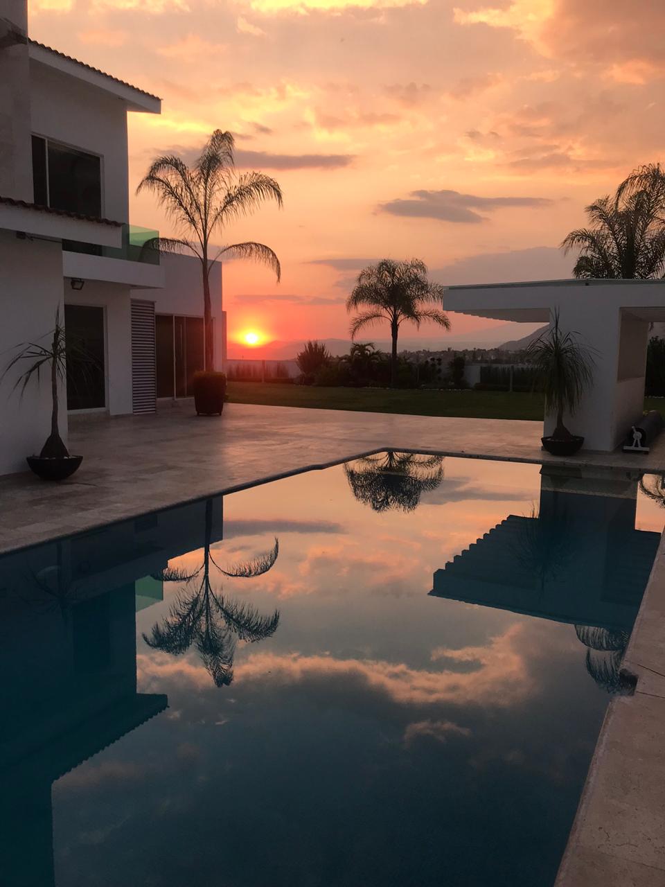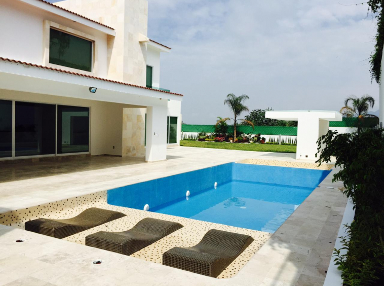 En exterior la terraza, alberca equipada con asoleadero, baño completo, gran jardín, palápa con asador y tarja, garage techado para tres autos.